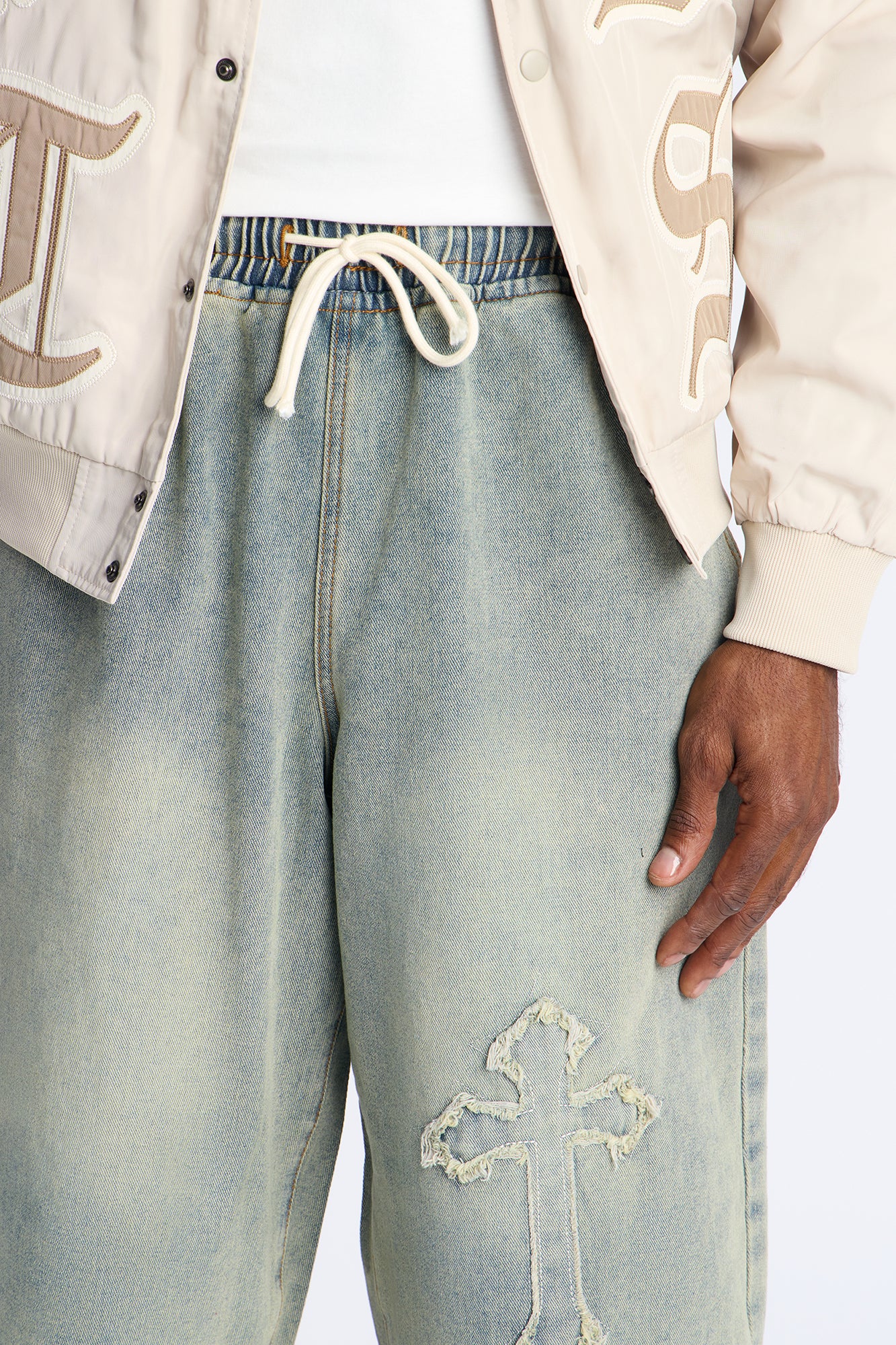 Baggy Love Cross Jeweled Denim Shorts Vintage Wash Regular Fit