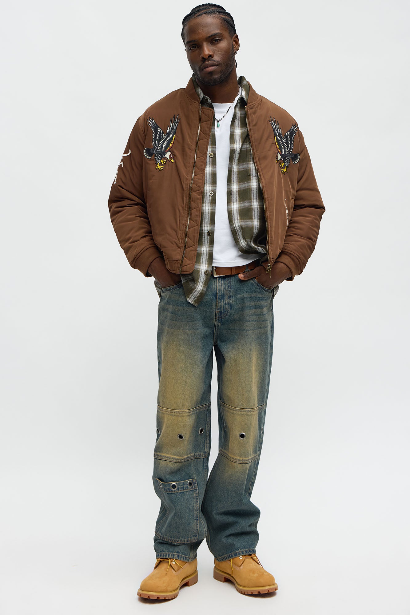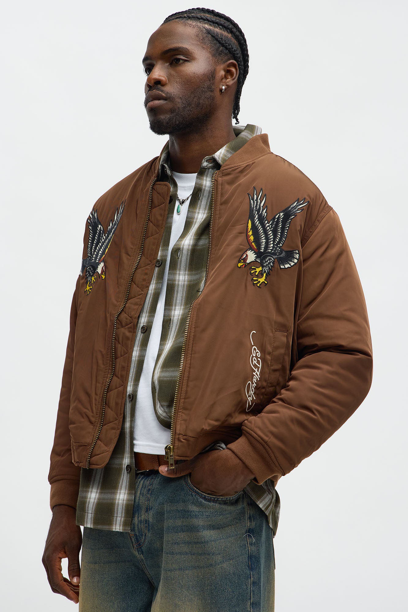 Ed Hardy Revival Padded Bomber Jacket in Brown