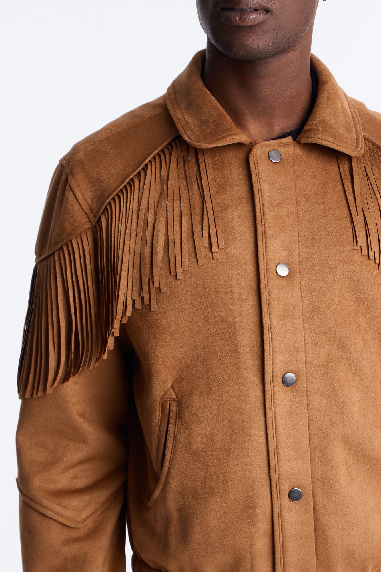 Fringed Festival Grounds Faux Suede Jacket in Camel