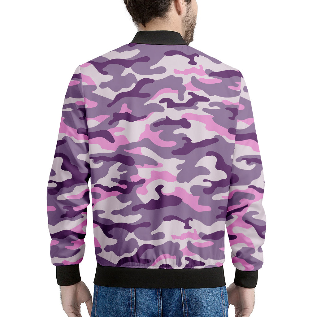 Pink Purple And Grey Camouflage Print Men’s Bomber Jacket