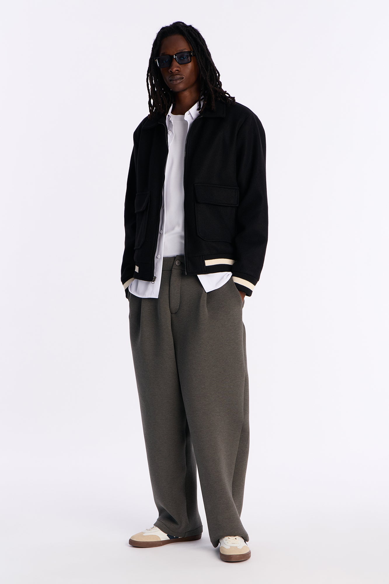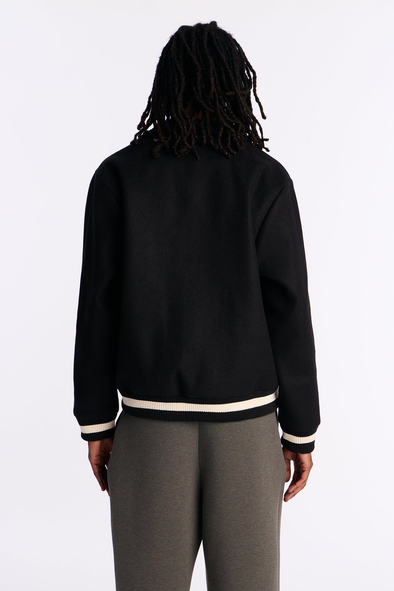 Retro Rib Wool Varsity Jacket – Black