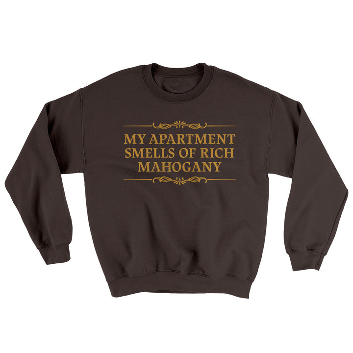 Elevate your ugly sweater game with the My Apartment Smells Of Rich Mahogany Ugly Sweater, a soft and durable crewneck sweatshirt perfect for holiday parties, casual outings, or lounging. Featuring the iconic quote ‘I wanna say something. I’m gonna put it out there; if you like it, you can take it, if you don’t, send it right back. I want to be on you,’ this sweatshirt captures Anchorman humor in a fun, festive design.